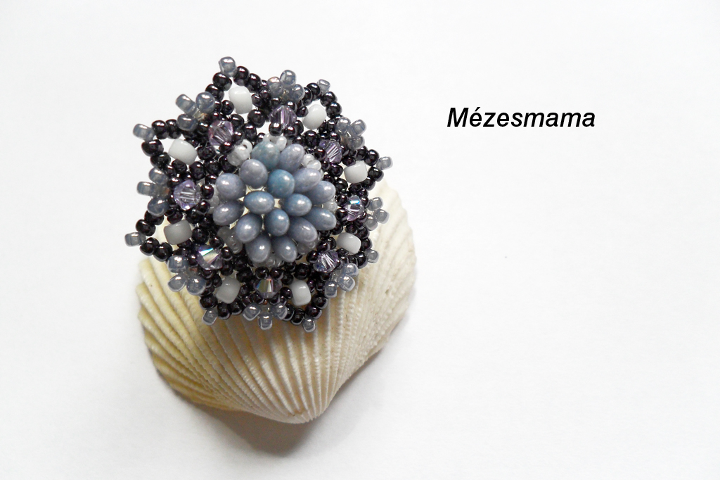 Innen 1db 15/0 1db 3mm 1db 15/0 gyöngy következi...az Sd felső lyukába ölts!Ezt körben ismételd!